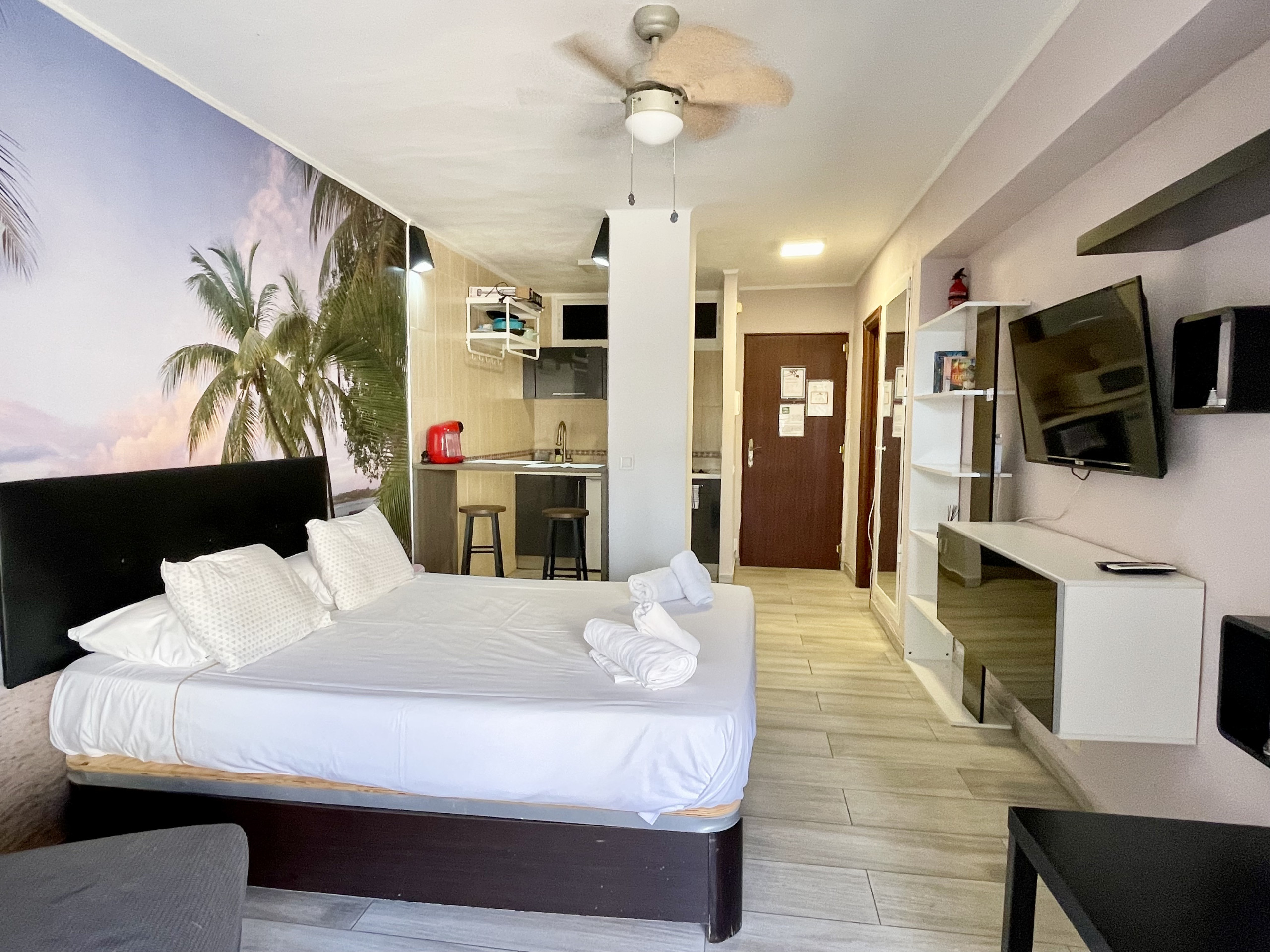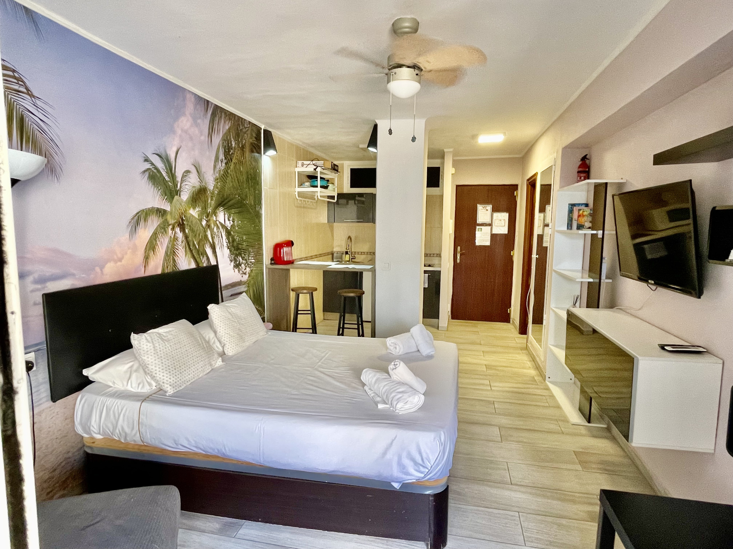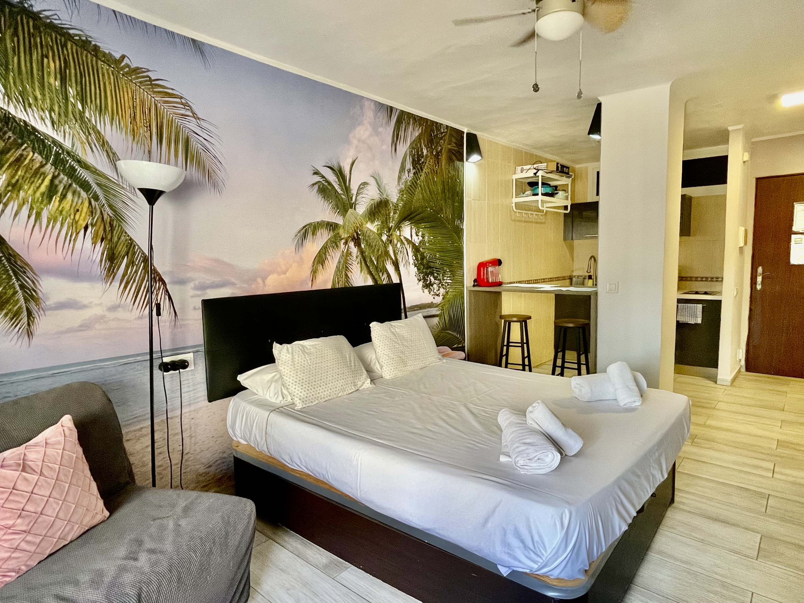 Disfruta de una estancia cómoda y con todo lo necesario en este apartamento a solo unos pasos de la playa. Cuenta con una cama doble, sofá cama, baño completo y una cocina equipada con microondas, nevera, vitrocerámica y fregadero, ideal para preparar tus comidas durante la estancia.