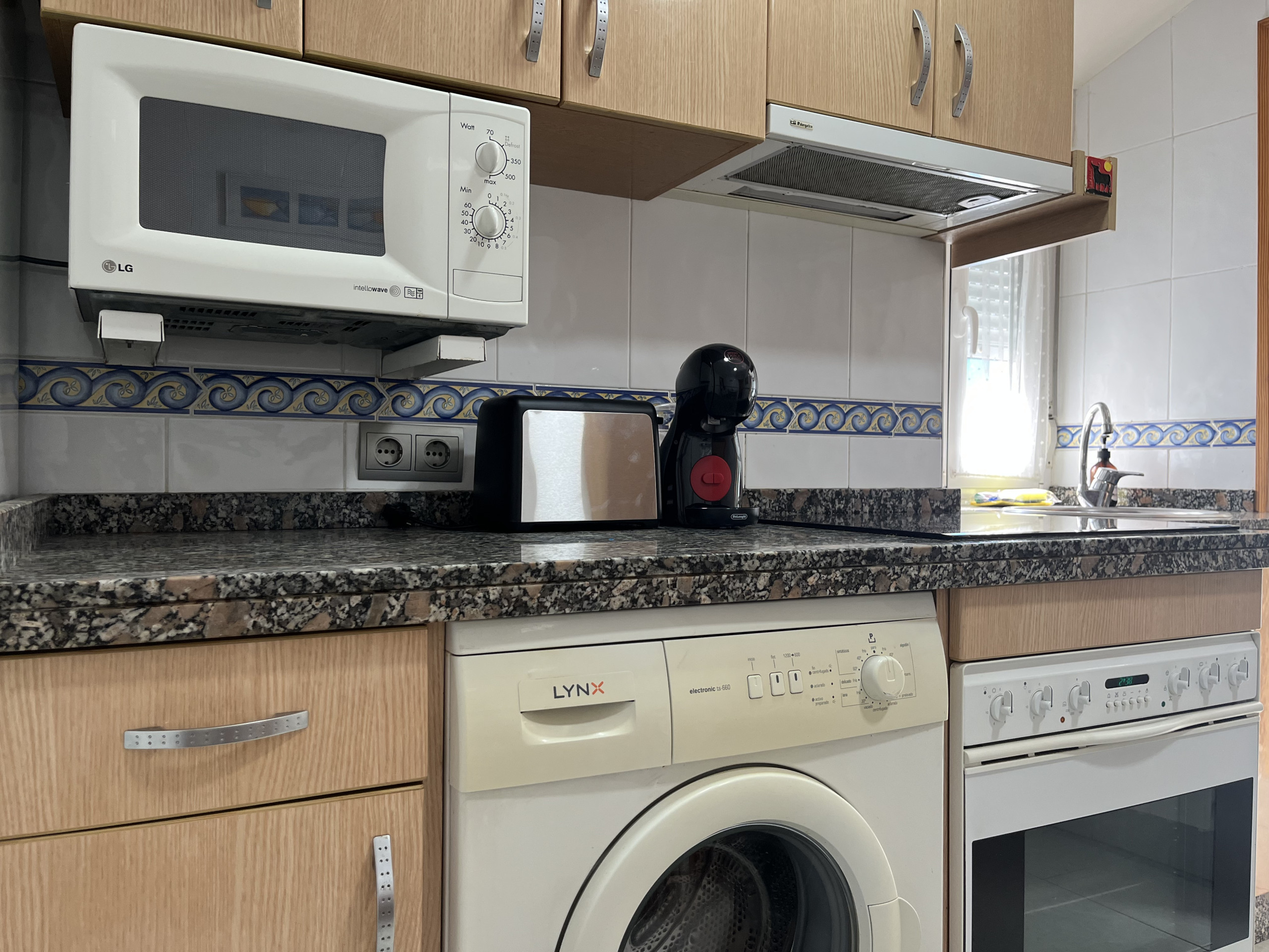 Cocina Independiente: La cocina es independiente y está totalmente equipada con vitrocerámica, horno-microondas, frigorífico y todo el menaje necesario para preparar tus comidas.