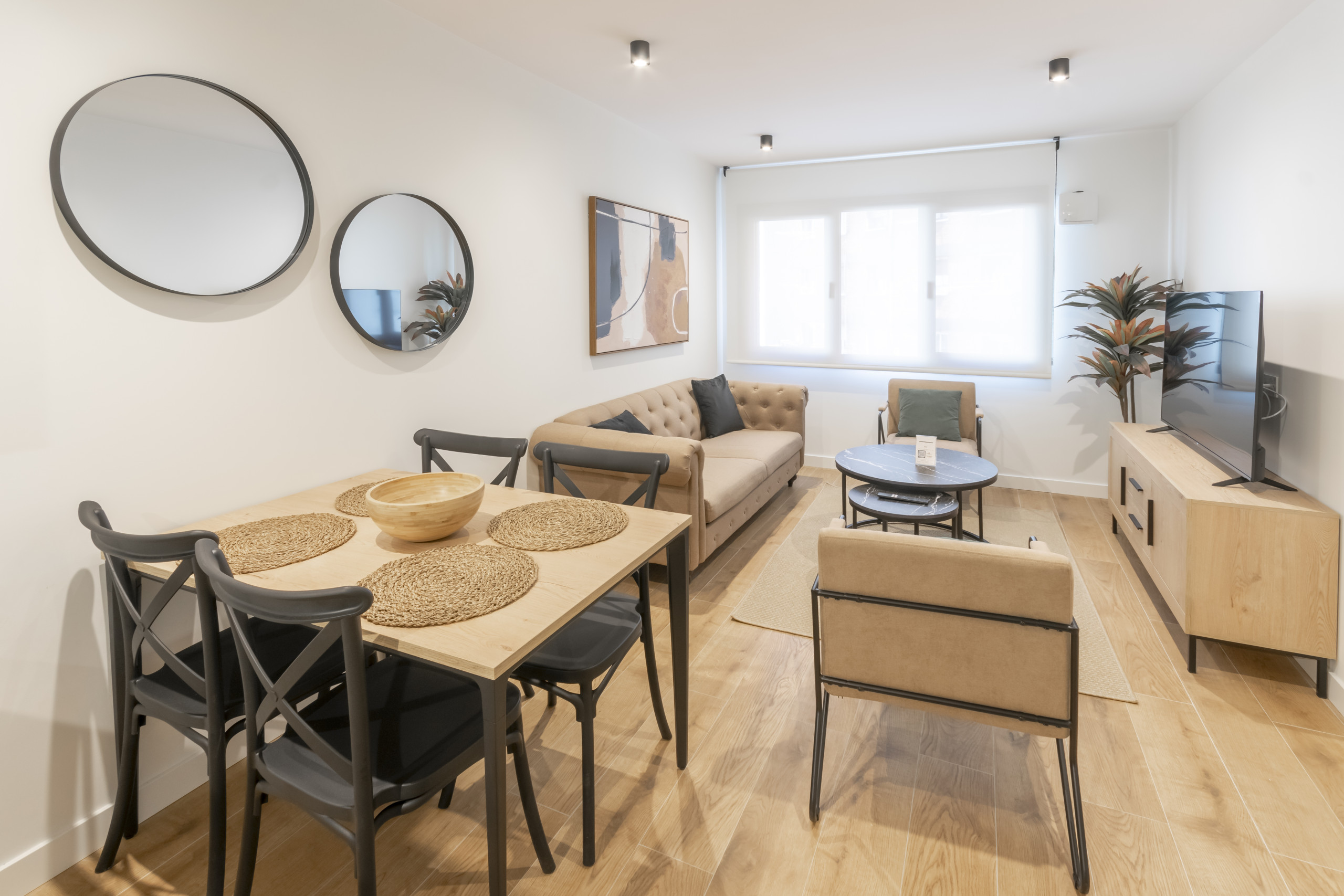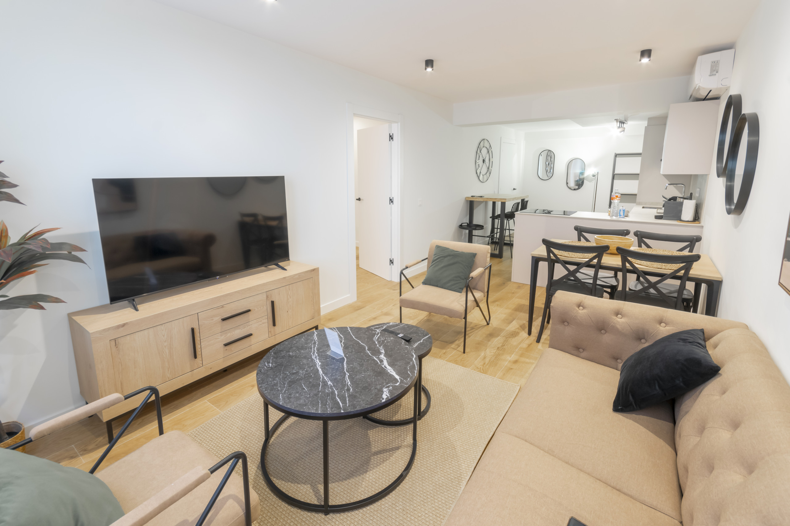 Salón-Comedor: Un salón elegante y funcional, perfecto para relajarse en el cómodo sofá (no es sofá cama) y disfrutar de la Smart TV.