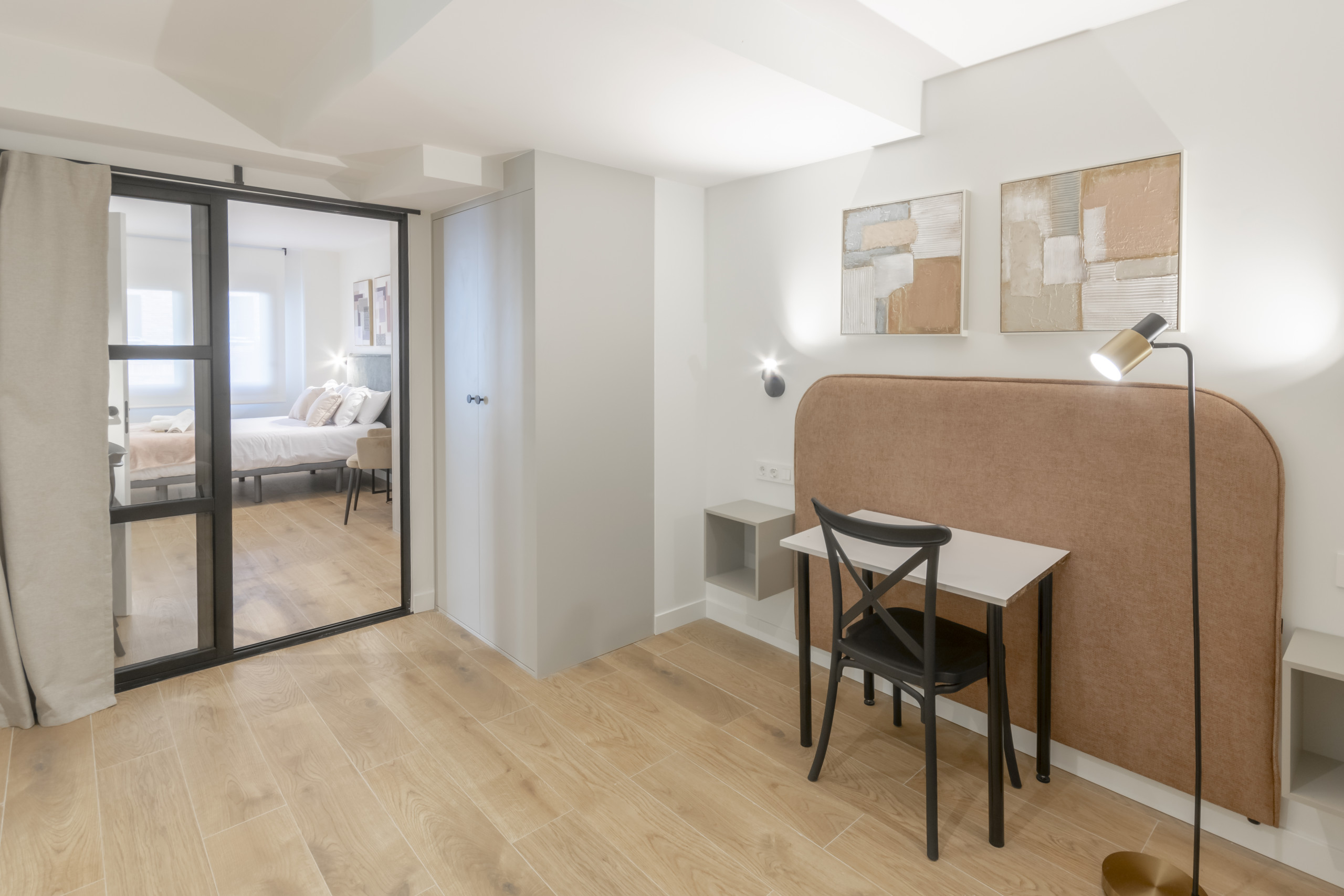 El apartamento es perfecto para estancias de trabajo (workation) o escapadas en pareja, gracias a su dormitorio con escritorio dedicado.