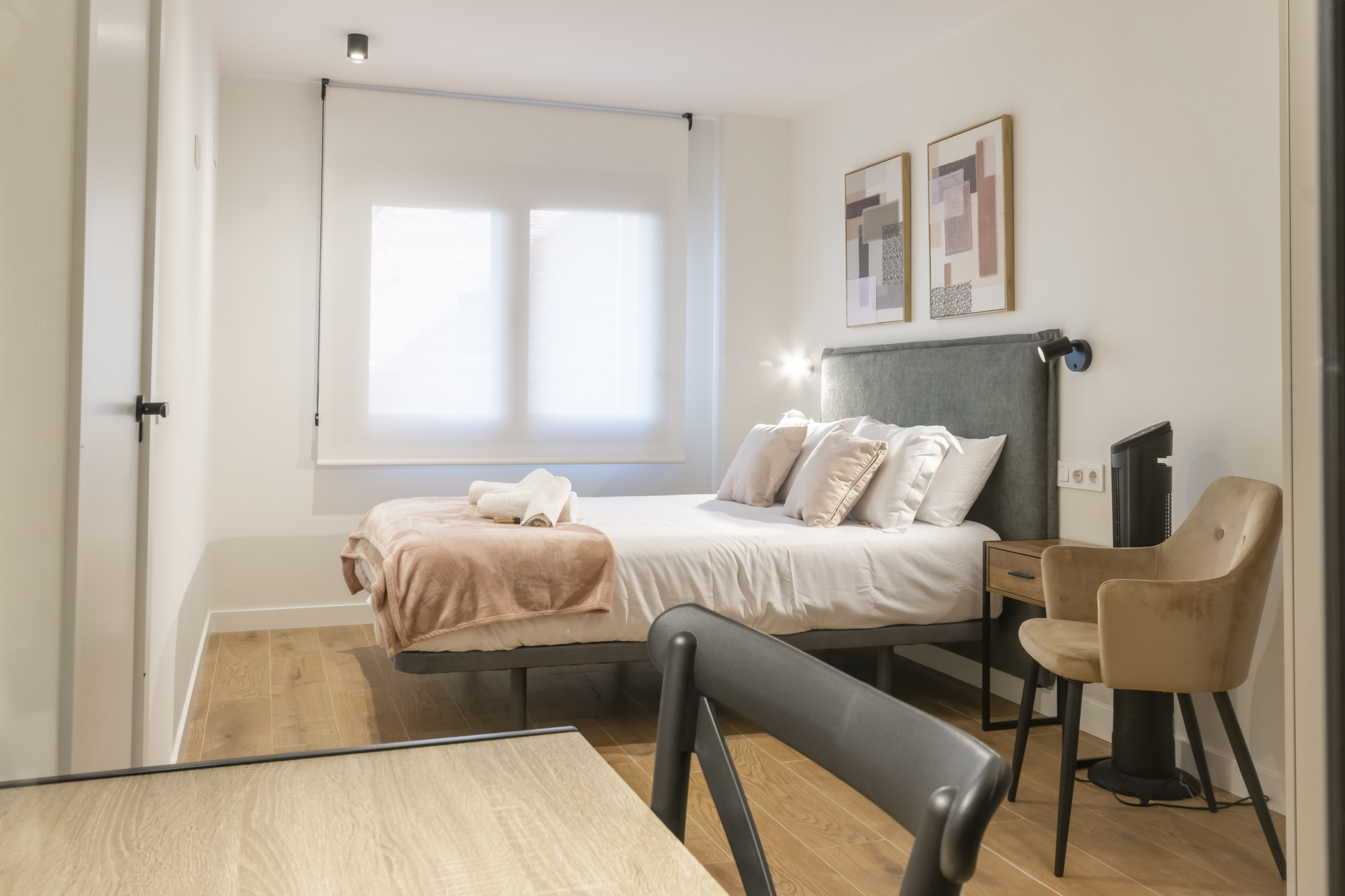 Descubre una estancia superior en Oviedo. Nuestro Apartamento Urban Superior de 1 dormitorio es la opción perfecta para quienes buscan un plus de diseño y confort, especialmente para estancias de trabajo. Disfruta de una decoración más pulida y detalles cuidadosamente seleccionados.